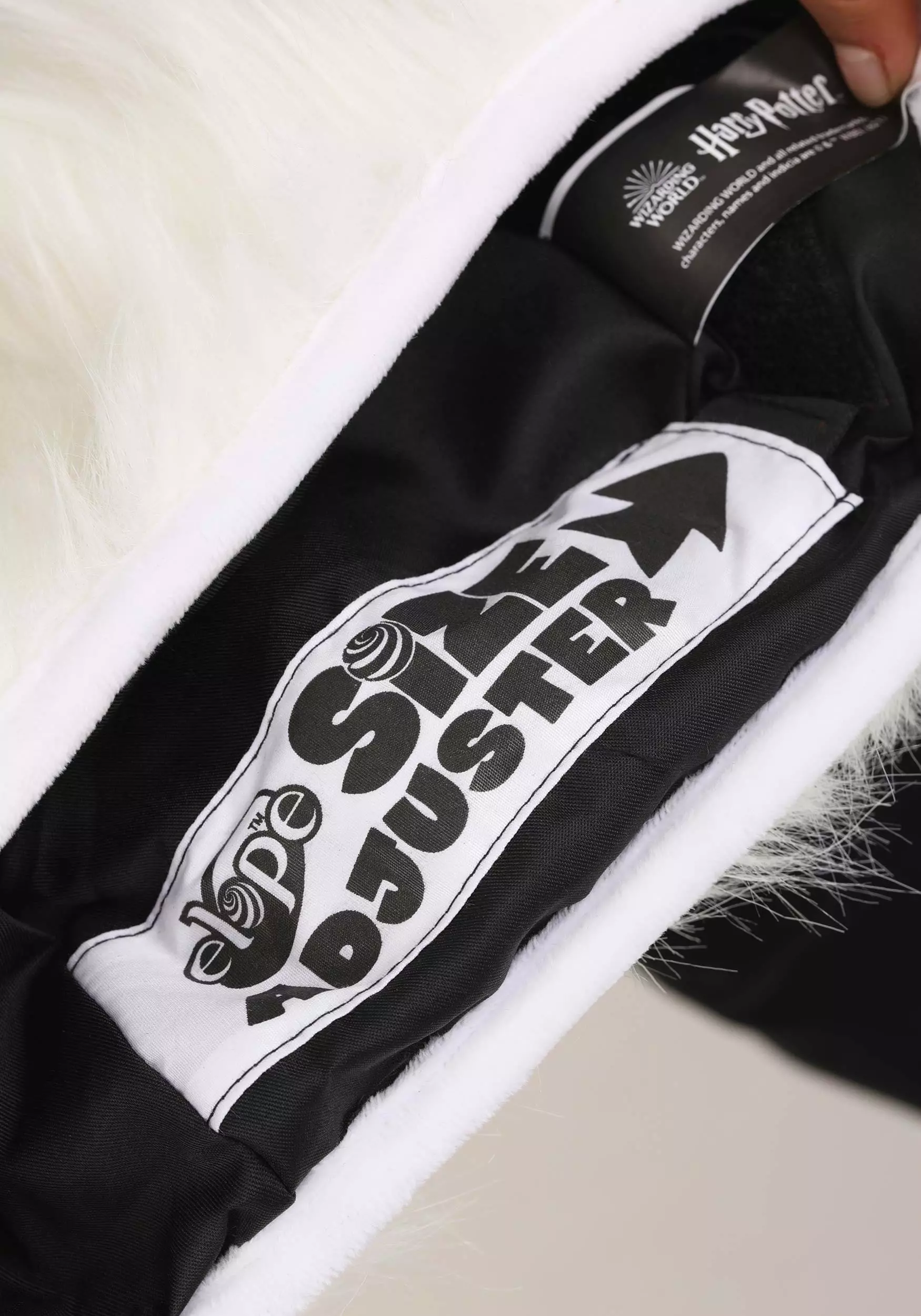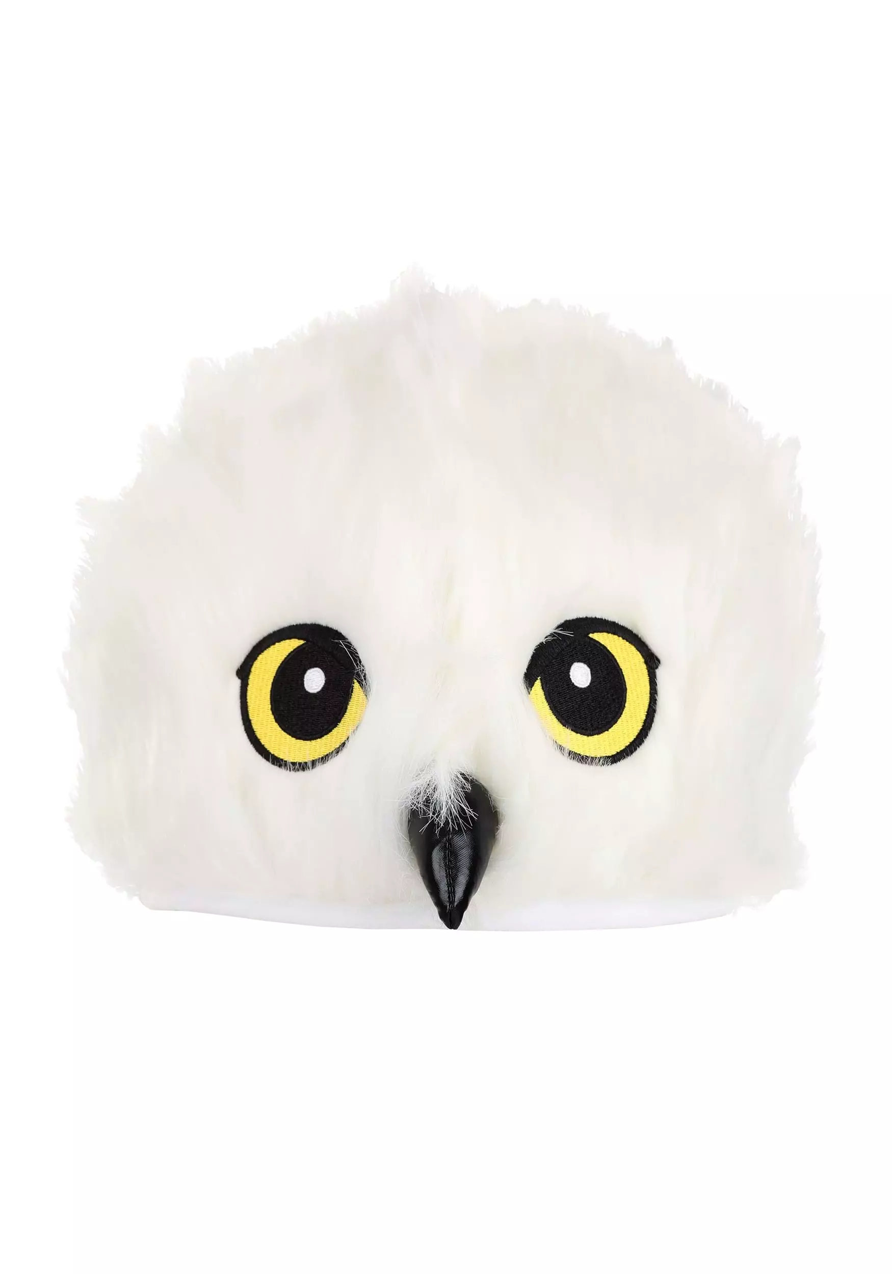 Deliver parcels, postcards, Daily Prophet issues, Quibbler subscriptions, and maybe even the occasional Howler in this exclusive, officially licensed Hedwig Owl Plush Hat! The snow-white headpiece is made of soft faux fur and conceals a size adjuster inside its rim. Embroidered yellow and black owl eyes and an owl beak made of black vinyl embellish the front of the hat.Â