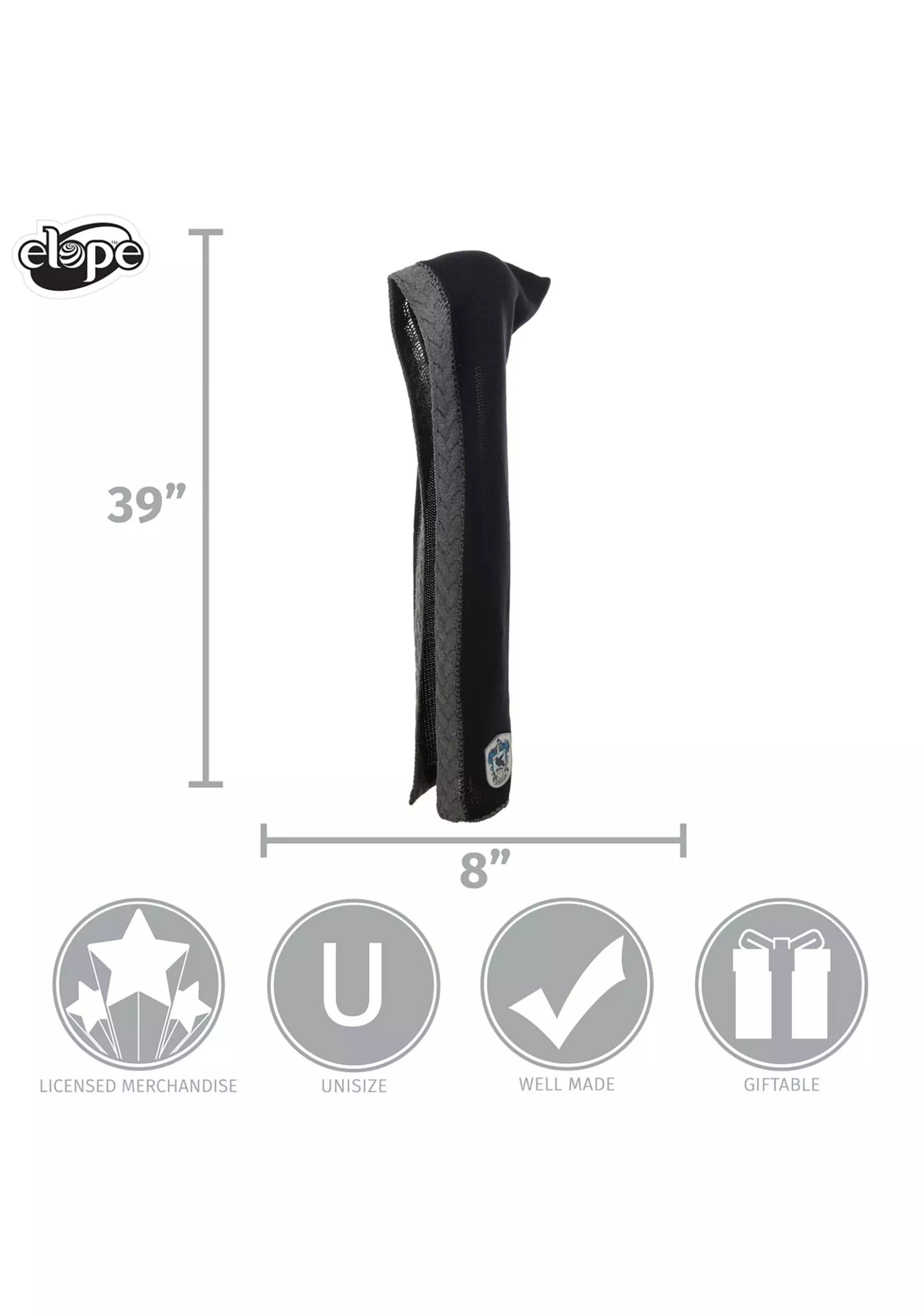 This comfy hood is an easy choice for any wizard looking to warm up with their winter wear! The long hood measures 30 inches long on each side, so you can wear it like a hood or a scarf. The acrylic construction gives it a cozy feel and the dark blue and silver colors are a nod to the Hogwarts House. The side of the hood even has a Ravenclaw crest on it! It helps you stay warm when you cosplay as your favorite Harry Potter characters during the winter, but also works as a piece of your everyday wear!