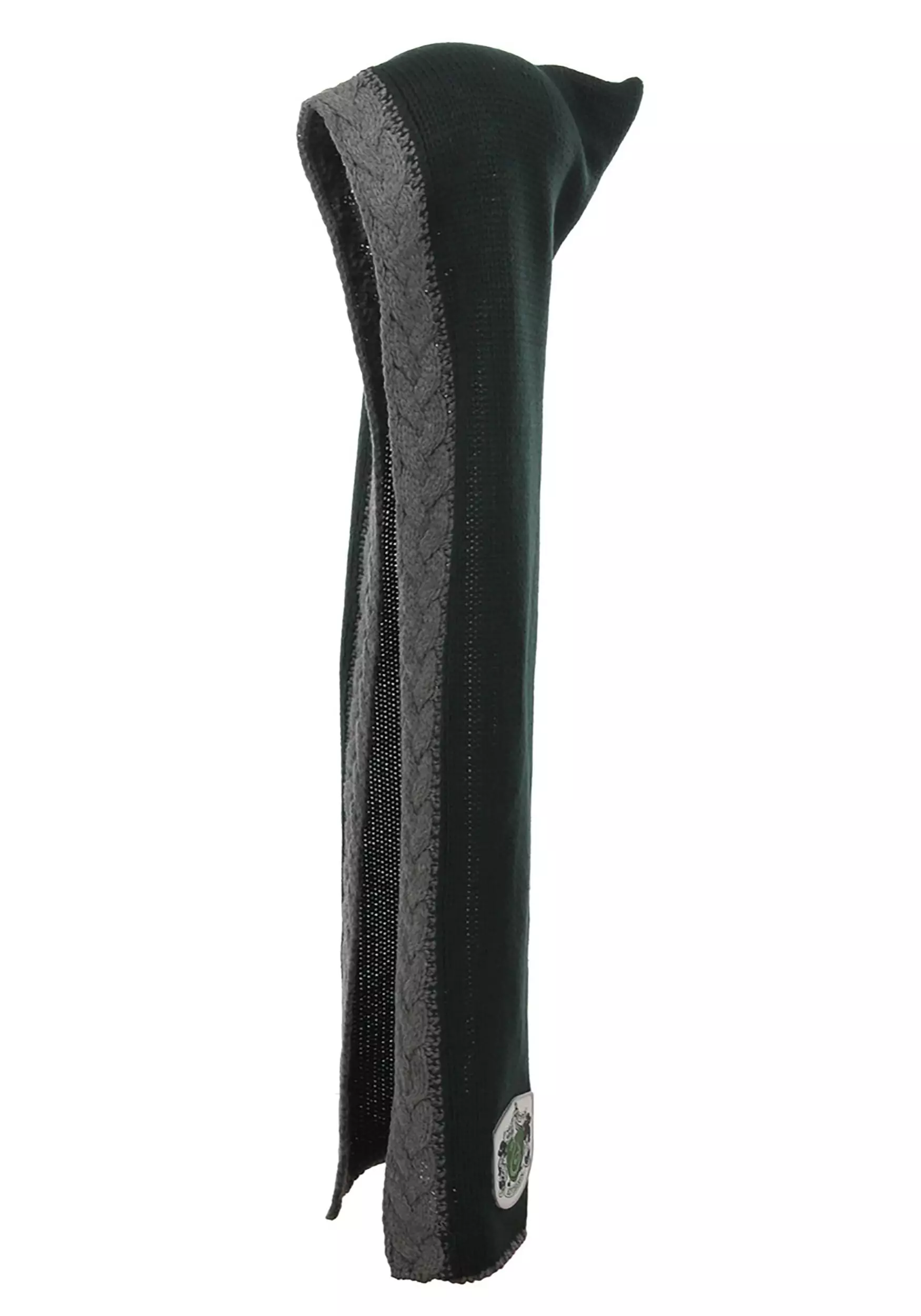 - Cable-knit band on front edge,Slytherin patch on left side