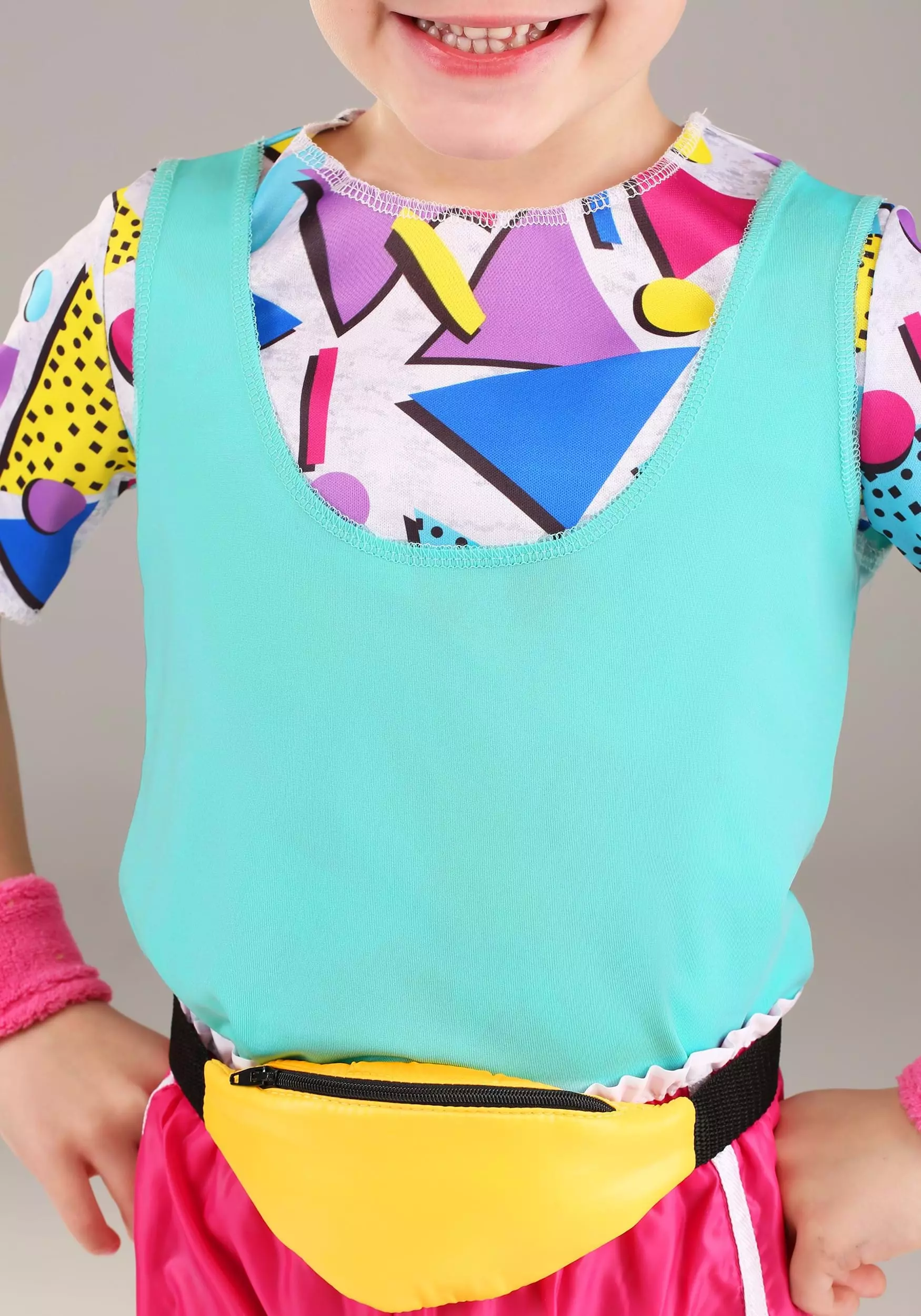 We don’t want to call anyone out on their age or anything, but our in-house designers definitely went back to their roots to craft this exclusive, clever, and cute kid’s costume! It’s a bright and high-energy mix of pink athletic shorts and a top that’s styled to look like an 80s geometric printed tee under an aqua tank top. Pink wristbands and a green headband offset the fun pattern and design. Add rad details like mirrored aviators, hand weights, or tube socks, and watch your kiddo bop to the beat of his own tune.