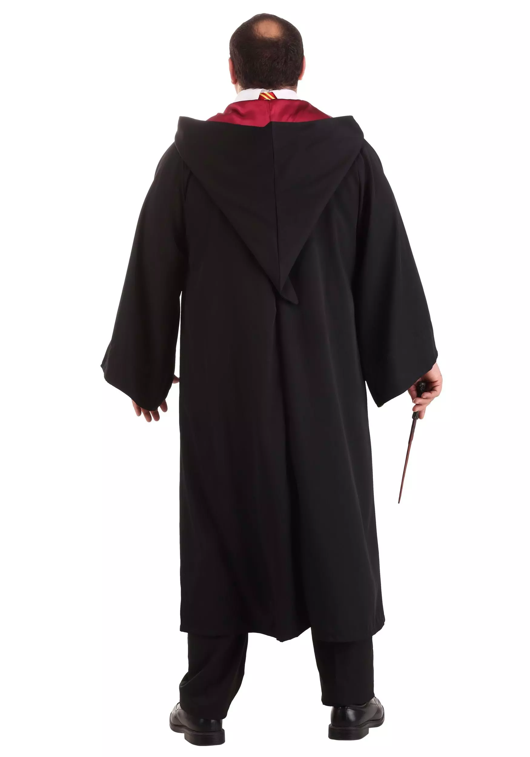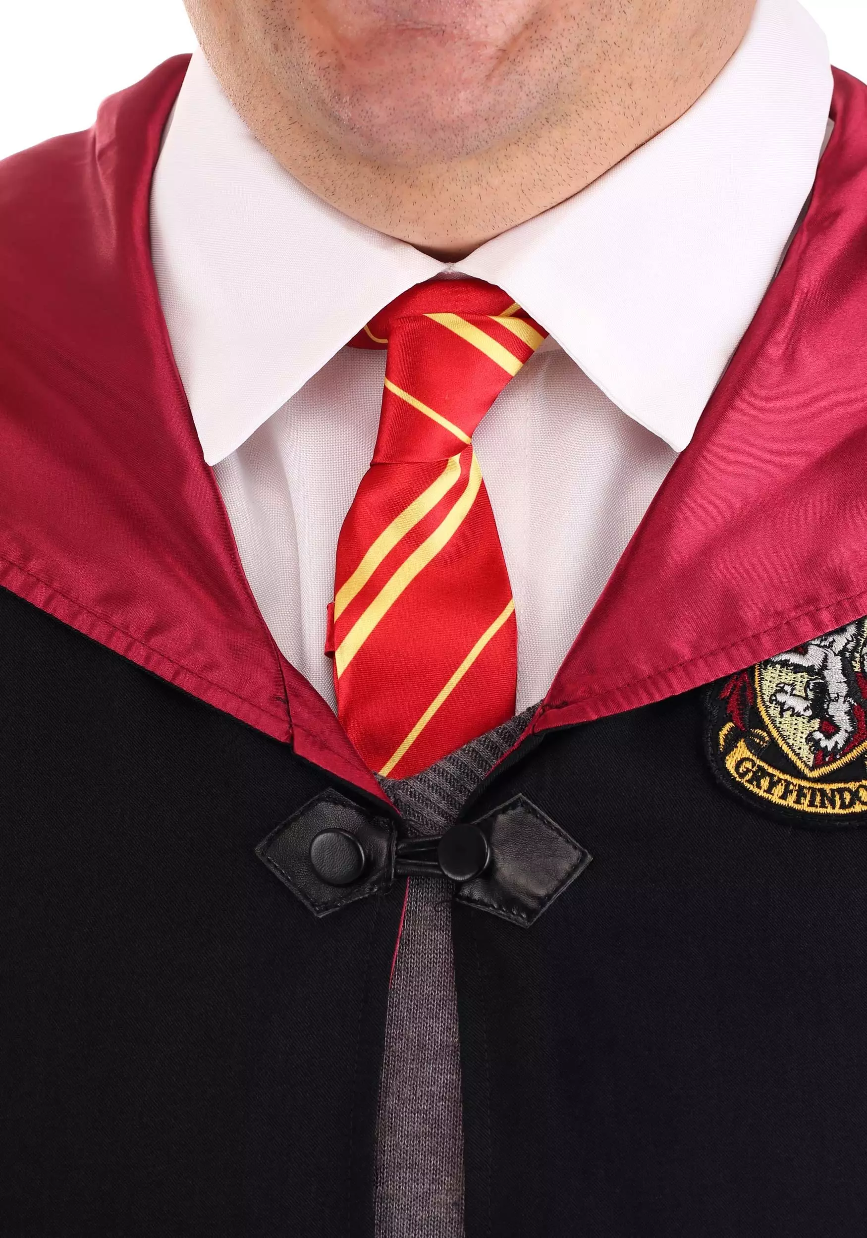 This exclusive and officially licensed Plus Size Harry Potter Costume is exactly what you need for all your wizarding adventures! It comes with a faux silk tie, just like Harry’s. The v-neck soft-knit sweater has an embroidered Gryffindor crest on the chest and could easily have been taken from Harry’s own wardrobe. The Dickey, with its hook-and-loop fastener, is very reminiscent of one that Harry once wore. We want to stress that the hooded robe is not the invisibility cloak and is, in fact, very visible. Its red satin lining on the sleeves and front edges make it more like a visibility cloak.