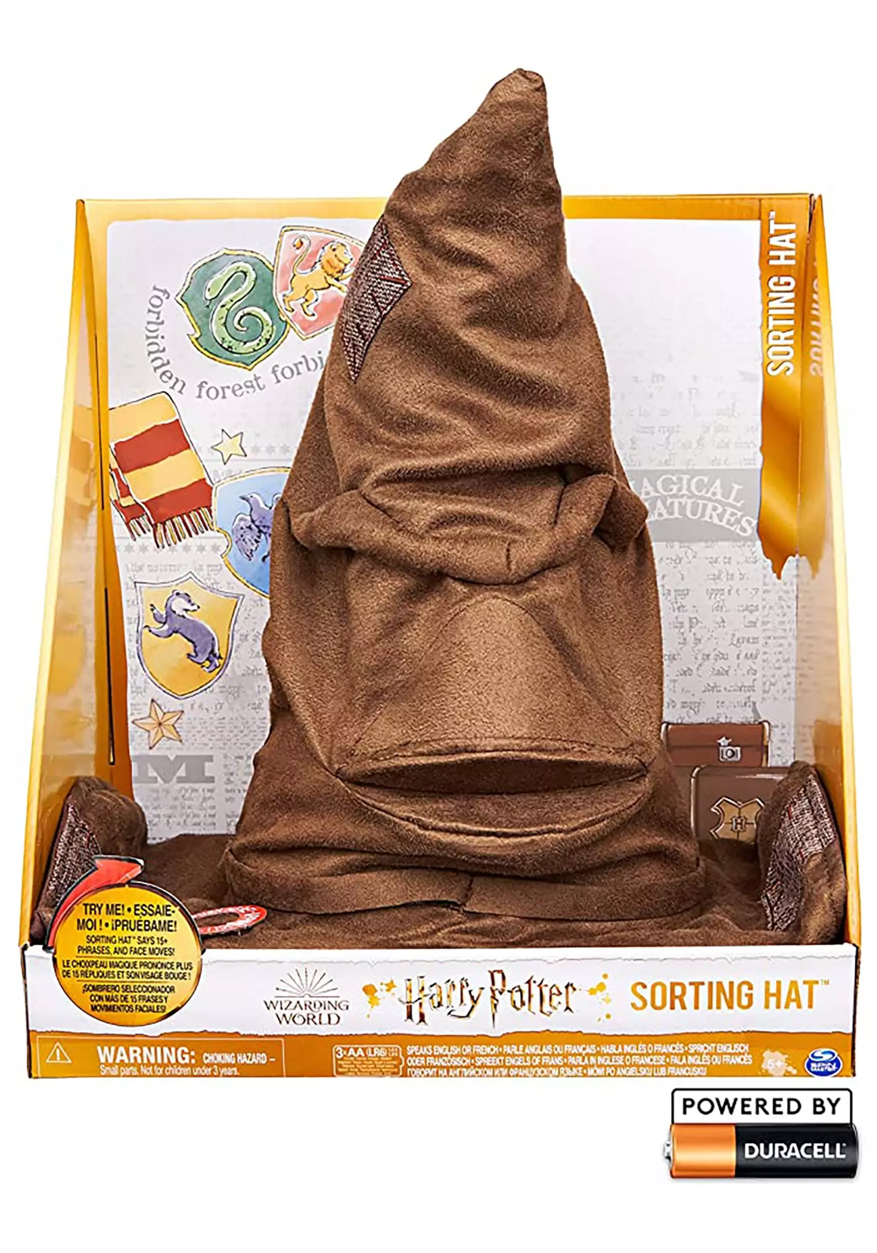 Discover which house will claim your allegiance with this officially licensed Wizarding World of Harry Potter Costume Sorting Hat! The hat is made of brown material and sewn with faux leather patches. It has a wide brim, and its pointed hat is slightly curved and sewn with stylized bunching to give it the Sorting Hat’s wrinkly face.Â